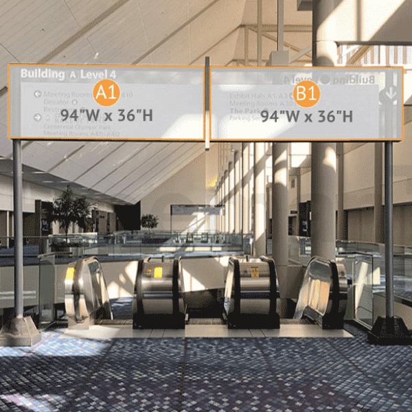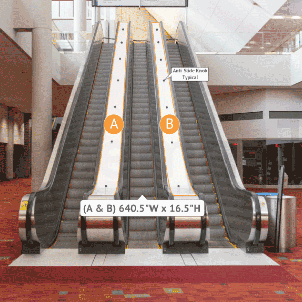 Make a lasting impression on attendees as they move through the convention center. The escalator saddle sign is positioned prominently above the escalators, ensuring maximum visibility as attendees travel between floors.