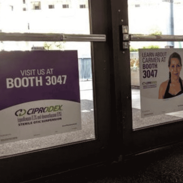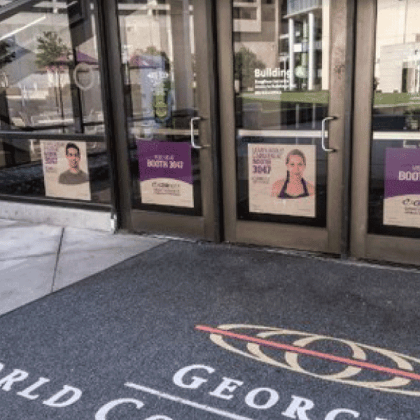 Make a bold first impression with branded door placed at the main entrances of the convention center (center doors). These high-visibility placements ensure your logo, messaging, or product promotion is the first thing attendees see as they arrive and enter the event. Whether used for brand awareness or to drive traffic to your booth, door and window clings offer a premium branding moment in a high-traffic, high-impact location.